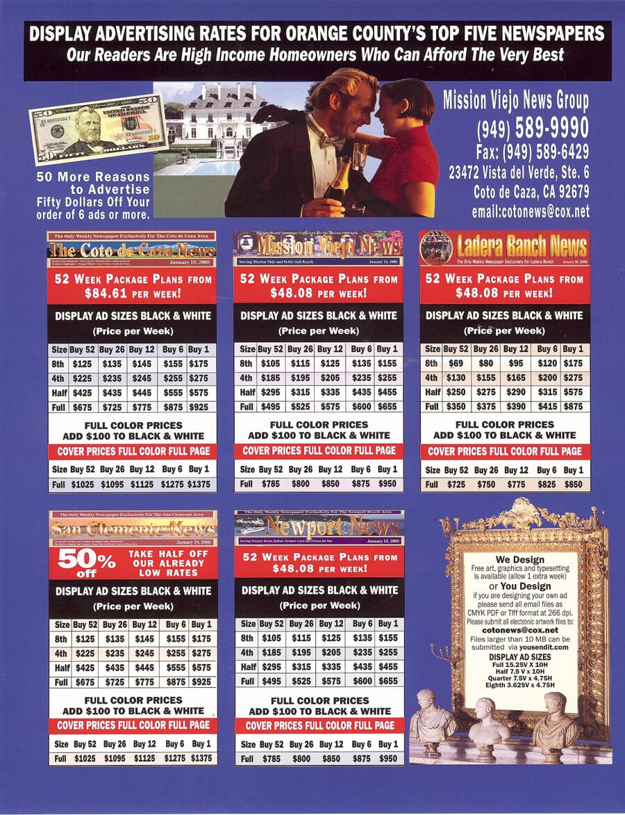 We are a local independent weekly newspaper group serving Orange County, published every Friday. We are not owned or operated by any of the big daily newspapers. The views and opinions expressed are those of the publisher and not any organization. No reproduction, in whole or in part is permitted without the express written permission of Orange County Newspapers. Legal Advertising: We have been adjudicated by the Orange County Superior Court as a newspaper of general circulation pursuant to Government Code 6000 case #A202554 on July 6, 2000 and as such is the appropriate newspaper to place legal and public notices for the Orange County Judicial Districts.